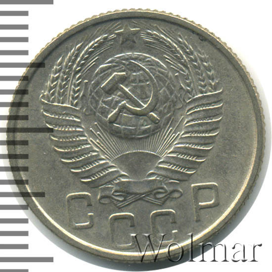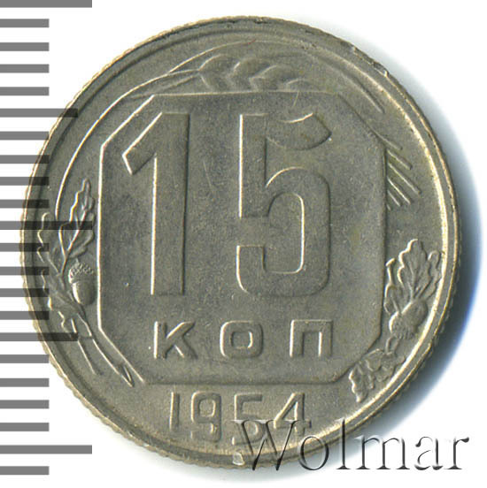 Реверс монеты 15 копеек 1954 года