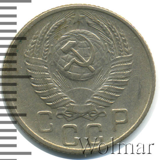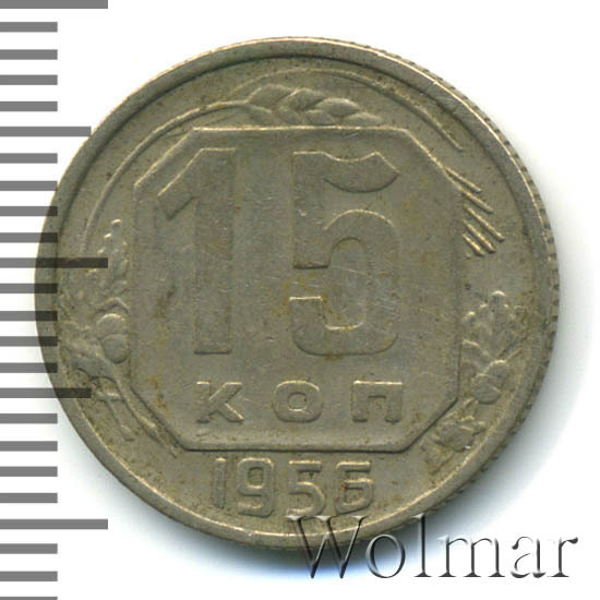 Реверс монеты 15 копеек 1956 года
