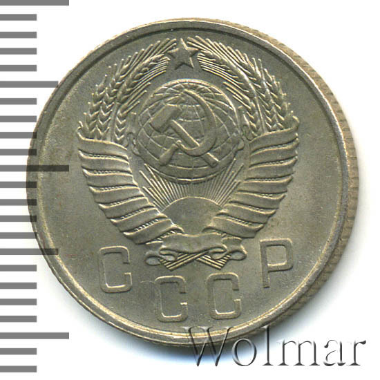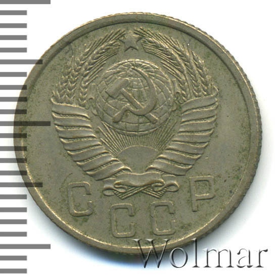 Реверс монеты 15 копеек 1957 года