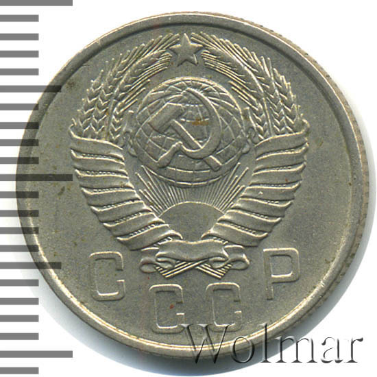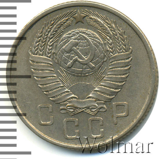 Аверс монеты 15 копеек 1957 года