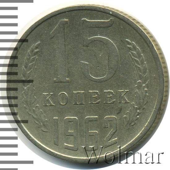 Реверс монеты 15 копеек 1962 года