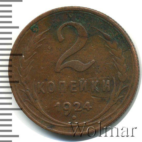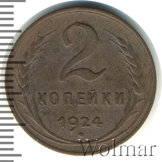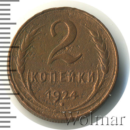 Стоимость 2 копеек 1924г. существенно отличается по разновидностям, таких видов существует 6, они разнятся незначительными деталями, такими как, варианты расположения узелков стебельного ободка реверса, гладким и рубчатым гуртом и проч. Самыми редкими считаются двушки с гладким гуртом.