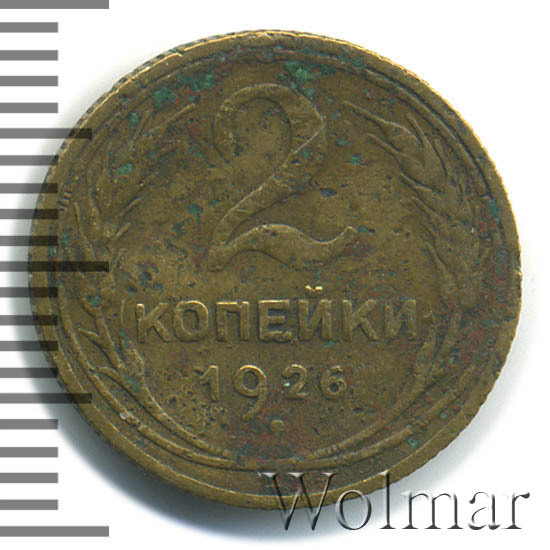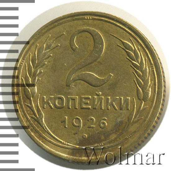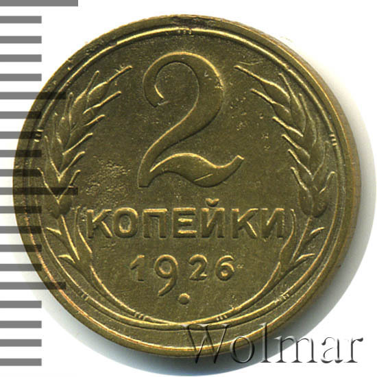 Двушки из сплава алюминиевой бронзы чеканились на Ленинградском монетном дворе в период с 1926 по 1957 год. Производство монет из бронзового сплава было вызвано экономией такого ценного металла как медь, из которой производились мелкие разменные монеты предыдущего образца 1924 – 1925 годов. 2 копейки 1926 года небольшая монета, весом в два грамма и диаметром 18 мм. Желтого цвета. Известные разновидности: лицевая сторона шт 1.1, шт. 1.2 м шт. 1.3. Разнозначные по встречаемости и цене. Чеканились монеты специального качества ( полированные) с лиц. ст. шт. 1.3 (легенда ближе к канту, серп в полюсе) R3 Ф№11. Цены на которые в тысячу раз превосходят стоимость обычной двушки.