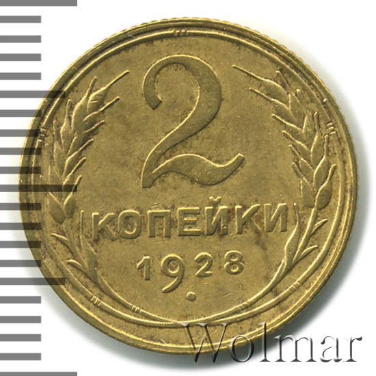 - Приспущенная двойка, приподнятая восьмёрка. Цена монеты 2 копейки 1928 года