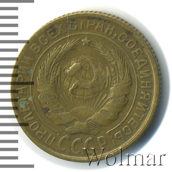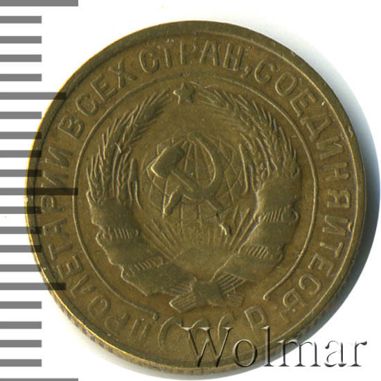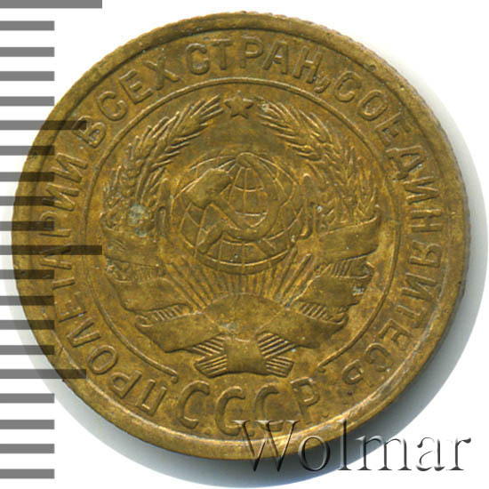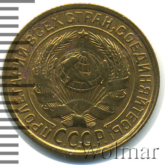 Штемпель 1.2. круговая надпись удалена от выступающего канта монеты, острие серпа в полюсе, герб СССР - 7 витков ленты.
