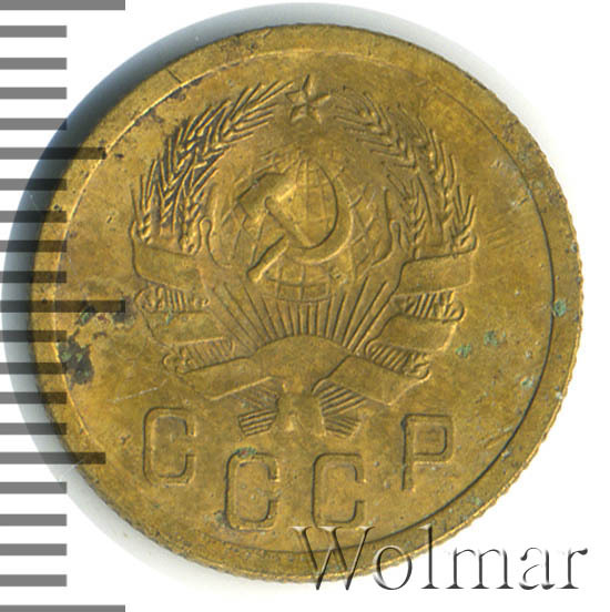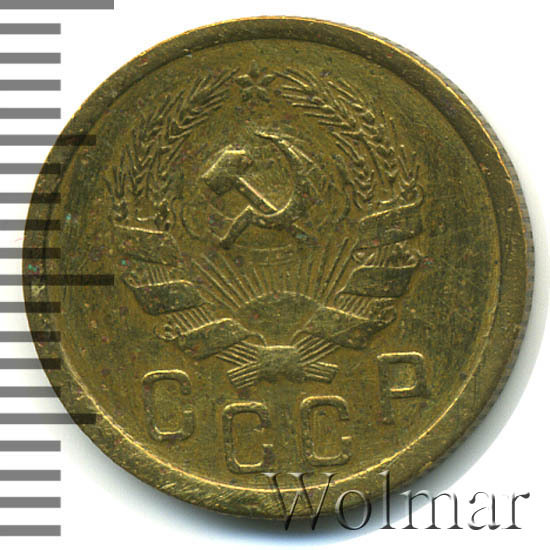 Госбанк Советского Союза в 1935 принимает решение о выпуске двух копеечных монет с двумя разными типами лицевой стороны. Выше представлена симпатичная двушка с новым типом аверса, более похожим на привычные нам монеты позднего СССР. На аверсе монеты остался только герб государства, круговая надпись с лозунгом "пролетарии всех стран соединяйтесь" уже отсутствует, буквы "СССР" квадратные. Для нового типа аверса выделяют целых пять штемпельных разновидностей, разнящиеся четырьмя или пятью стеблями колосьев слева и вариантами расположения узелков стебельного ободка.