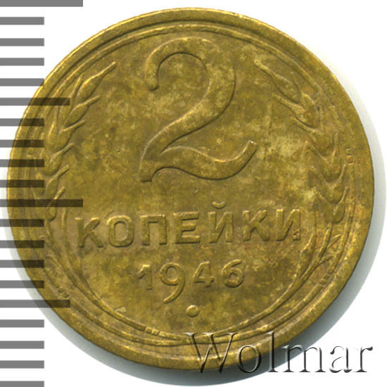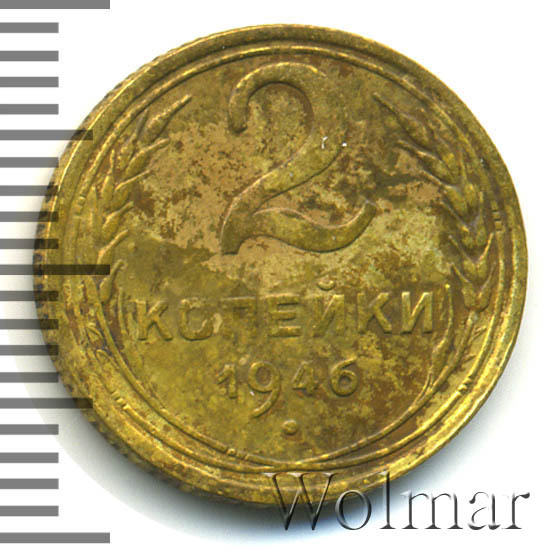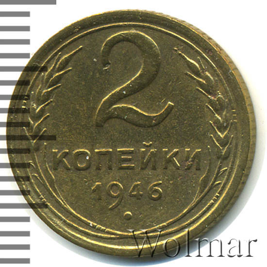 Цена на монету 2 копейки 1946 года на сегодня, 1 января 2026 года