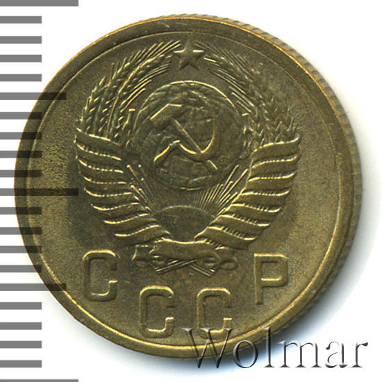 Разменная монета Советского Союза, одна из 7 номиналов регулярного чекана, выпущенных в этом году. Этот год запомнился пятым мировым кубком по футболу, проходившим в Швейцарии, на котором сборная ФРГ первый раз в своей истории стала чемпионом мира, а жителям огромного СССР передачей, указом Президиума Верховного Совета СССР от 19 февраля, Крымской области из РСФСР в состав Украинской ССР. И только на общекрымском референдуме 16 марта 2014 года, подавляющем большинством, крымчане решили выйти из Украины и войти в состав Российской Федерации. Разновидностей штемпелей данной монеты не известно. О приемлемой цене можно говорить только в коллекционной сохранности UNC. 2 копейки 1954 – немагнитная тиражная монета образца 1948 – 1957 годов.