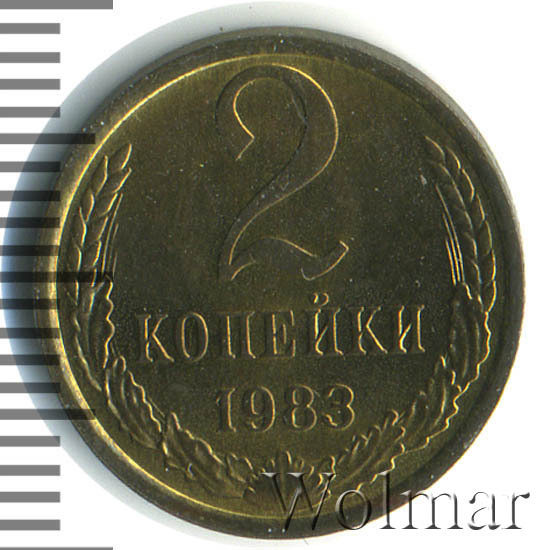 2 копейки 1983 - обычная разменная монетка, чеканилась в медно-цинковом сплаве и весила ровно 2 грамма. Встречаются такие двушки часто, а следовательно и цена за 2 копейки 1984 довольно низкая. Разновидностей монеты не известно. Подробнее ознакомиться со стоимостью 2 копеек 1983г. поможет наш каталог, составленный по результатам торгов на ведущих российских нумизматических аукционах.