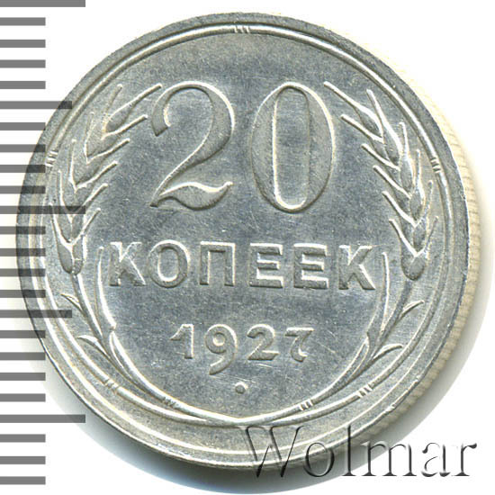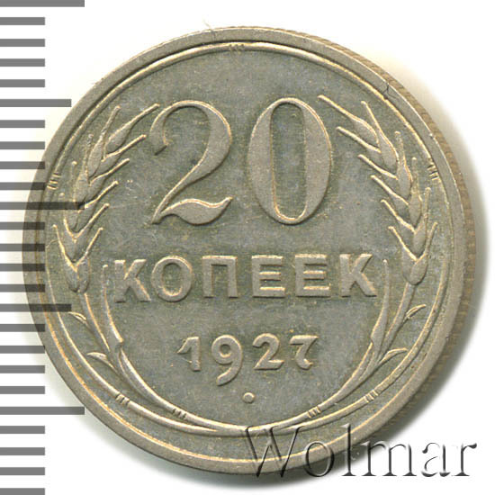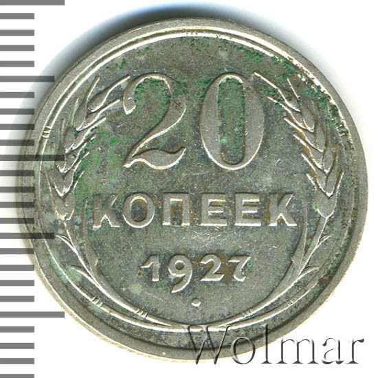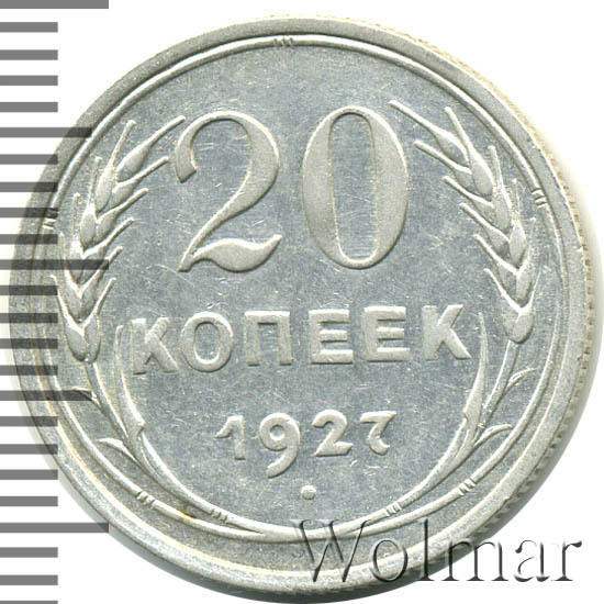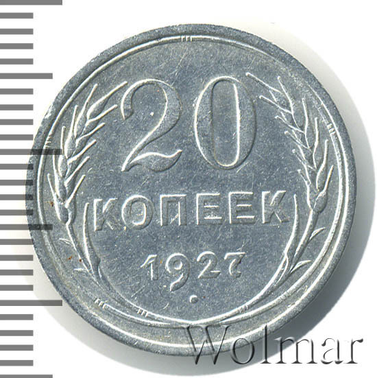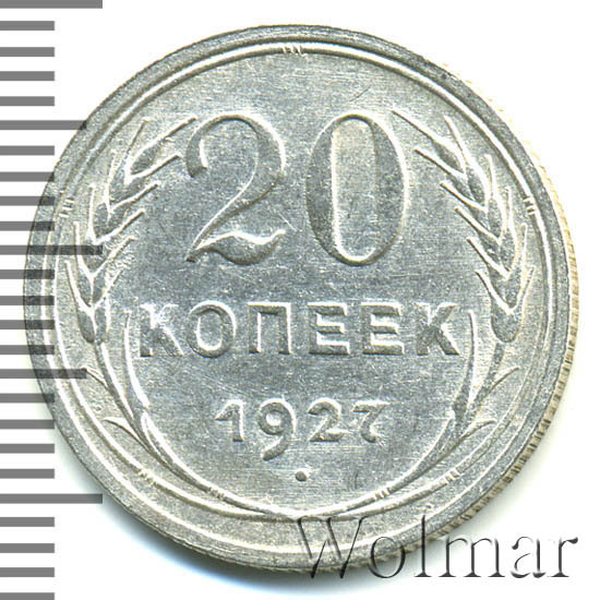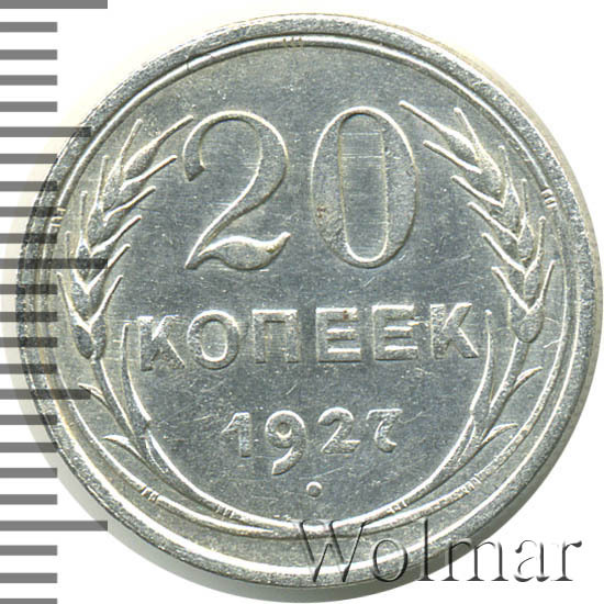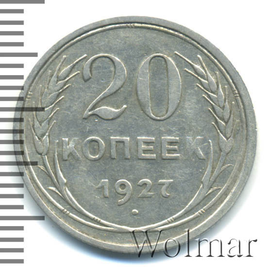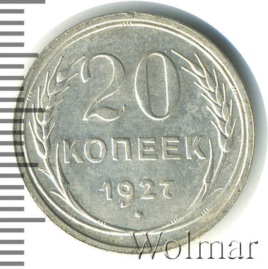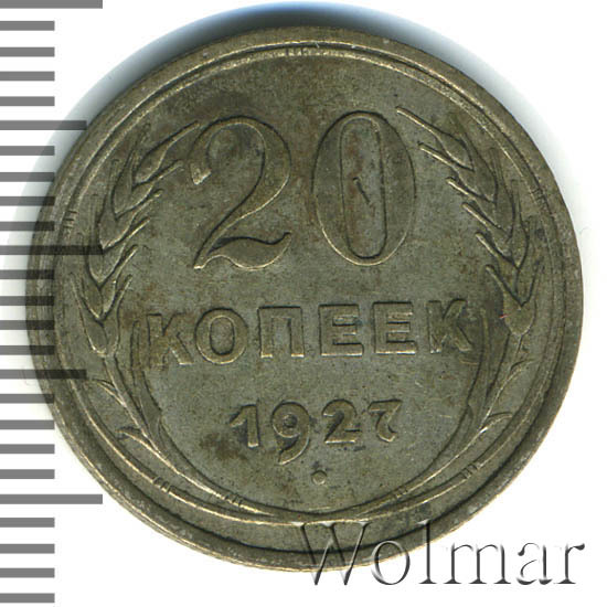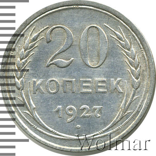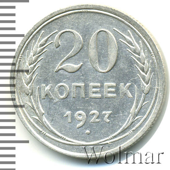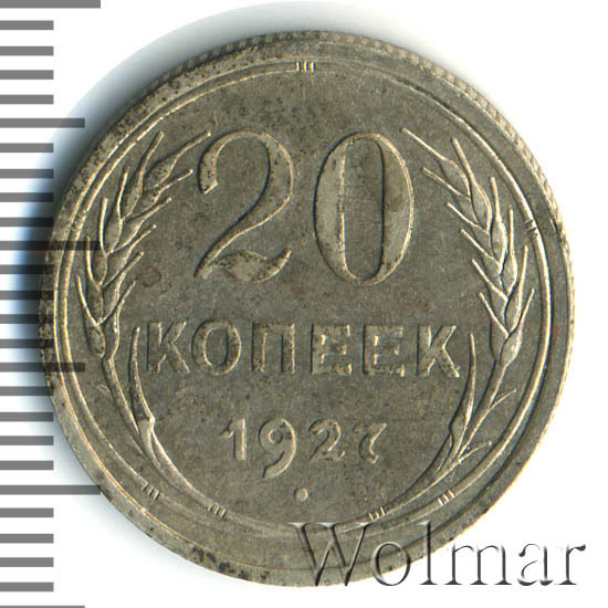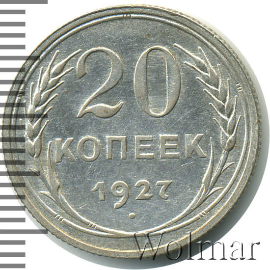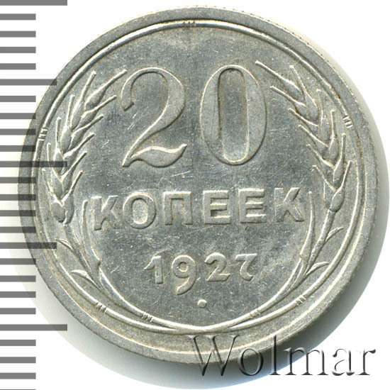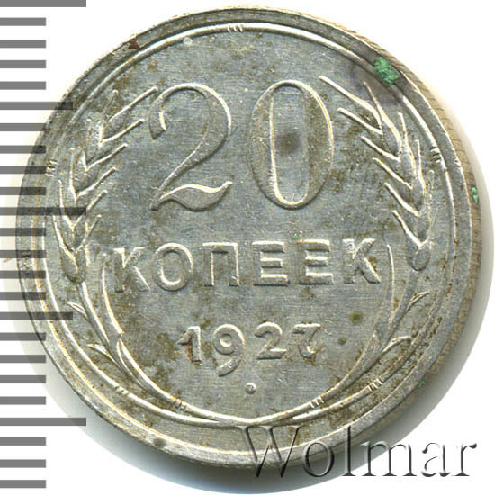 В чеканке советских монет из низкопробного серебра случился таинственный годовой перерыв, исключив производство монет с датой "1926". Если заглянуть во второе издание каталога Андрея Федорина и добраться до раздела пробных монет, можно поразиться количеству пробников 1925 года. Список сплавов и металлов внушителен (мунтца, алюминий, мельхиор, латунь, томпак, медь, алюминиевая бронза). Вероятно, металл предстояло сменить не только номиналам из меди, но и из серебра пятисотой пробы. Однако, этого не случилось. В 1927 году выпуск монет данного типа был возобновлён. Вероятно, процесс чеканки был снова запущен не в самом начале года, и монет выпустили несколько меньше, чем в другие годы этого периода. На это косвенно указывает факт, что какие-то особенные разновидности двугривенного 1927 года отсутствуют. Сколько стоит 20 копеек 1927 года? В ценниках можно увидеть, что 20 копеек 1927 года стоит немного выше, чем другие двугривенные того же периода. Может, именно потому, что производственному циклу предшествовала какая-то задержка. Впрочем, разница с другими "двадцатчиками" тех лет крайне несущественна.