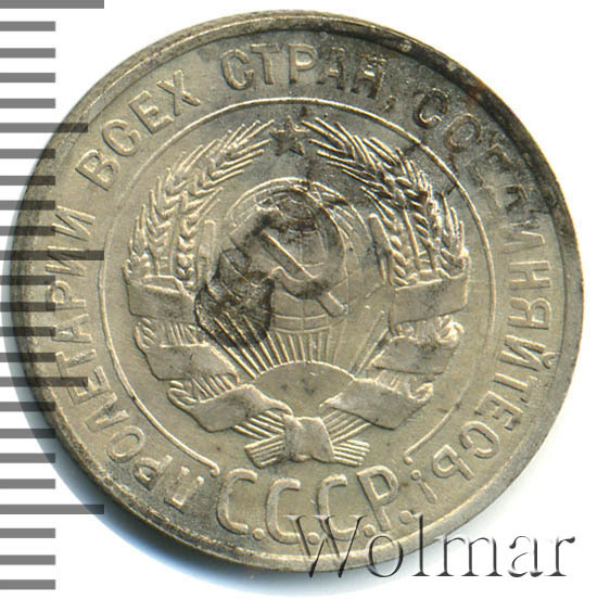 Известна одна штемпельная разновидность "перепутка" – лицевая сторона шт. 1.2 от 3к26, буквы "СССР" округлой формы, Ф№17 , вынесенная в отдельный раздел каталога. Цена на обычную 20 копеек 1929 г. не велика, но может измениться, в большую сторону, у экземпляра в отличном коллекционном качестве (в штемпельном блеске, без пятен и царапин). Более подробно ознакомиться с ценой 20 копеек 1929 года, Вы можете во вкладке «стоимость монет», а так же принять участие в текущих аукционах, пройдя по вкладке «активные лоты».