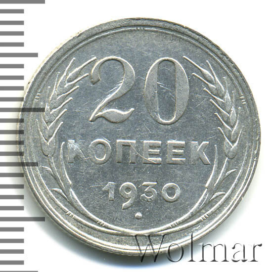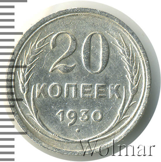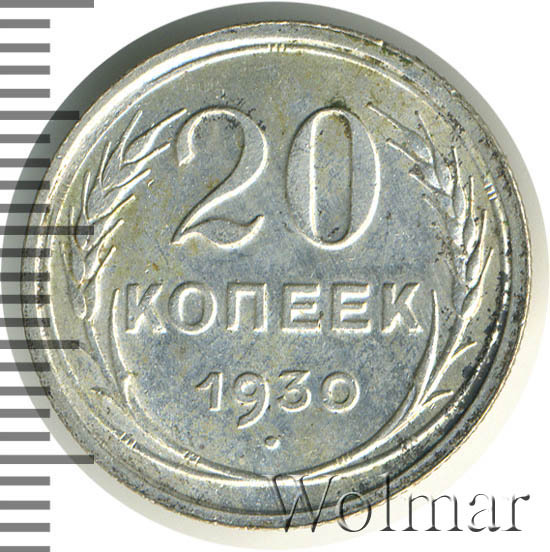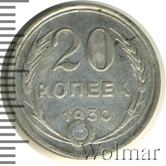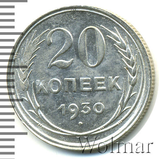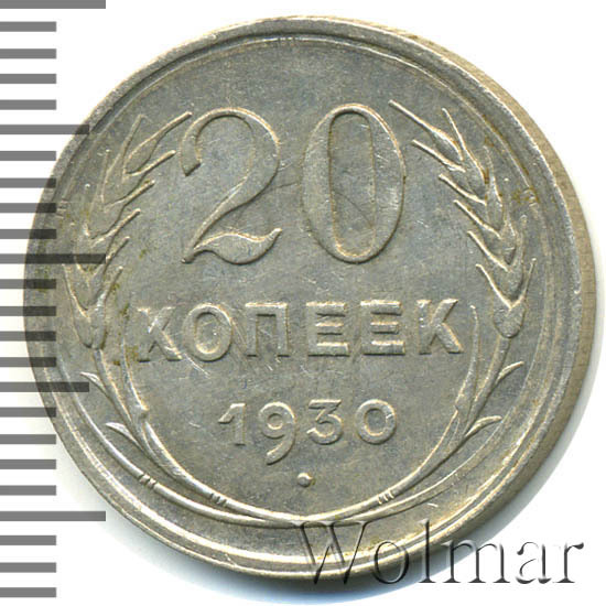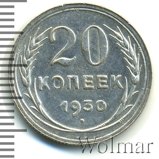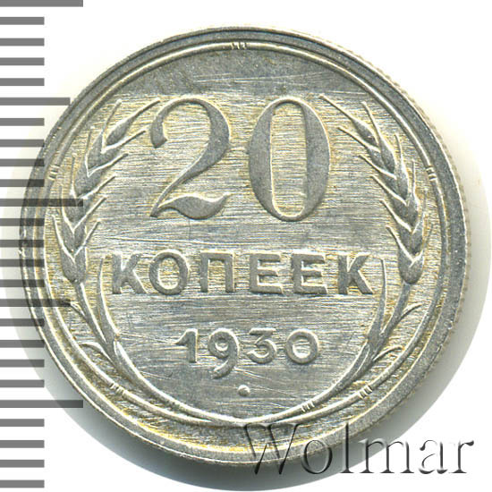 - Цена 20 копеек 1930 года. Советское серебро и его разновидности