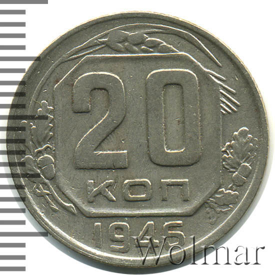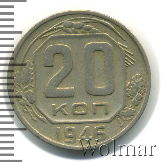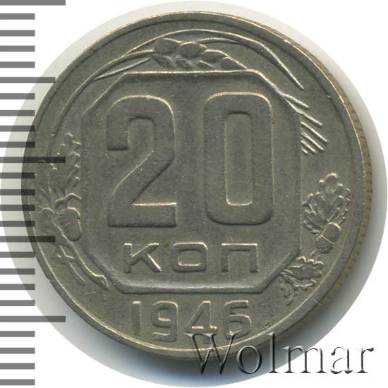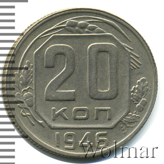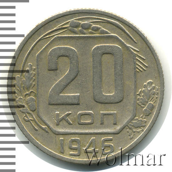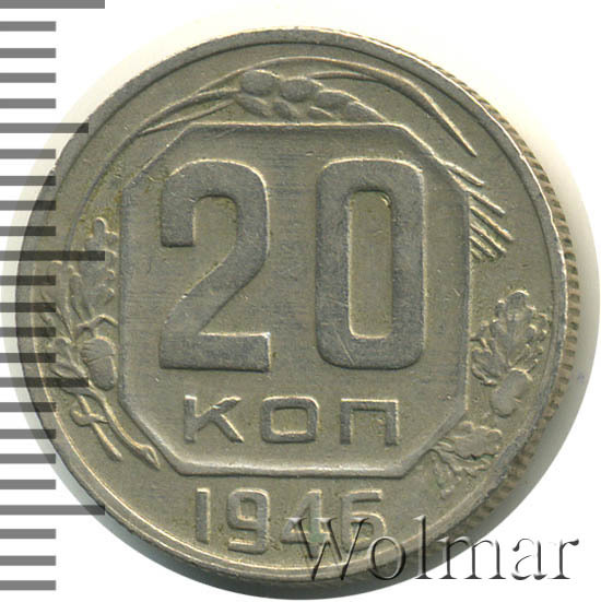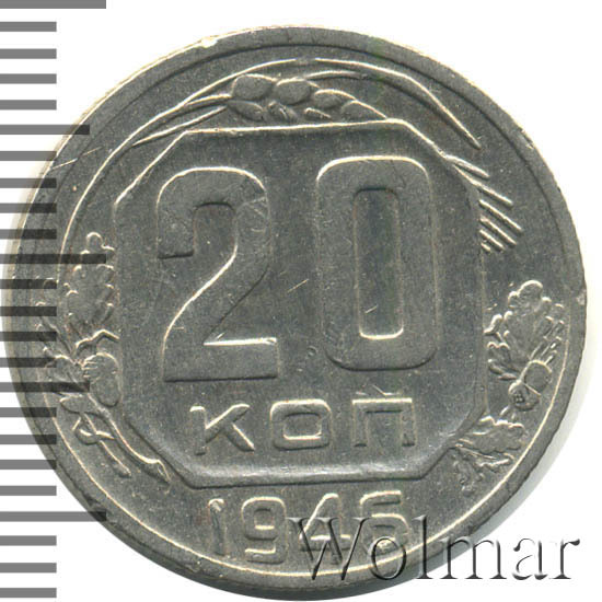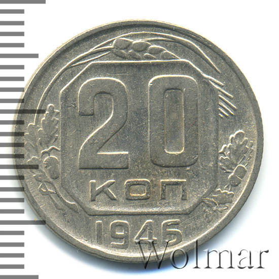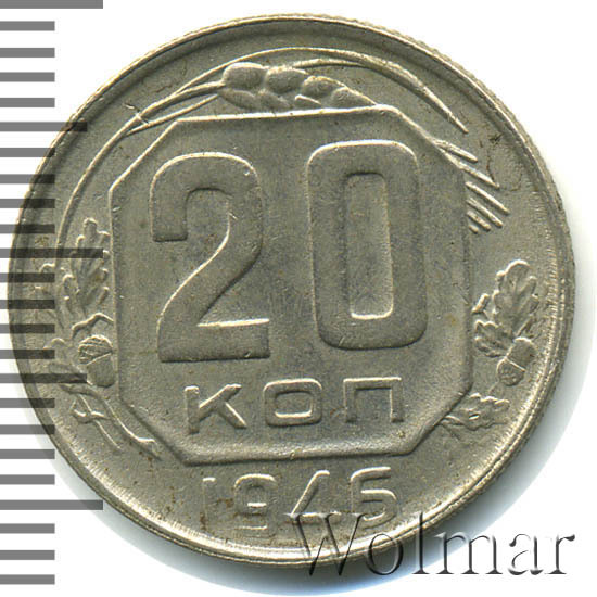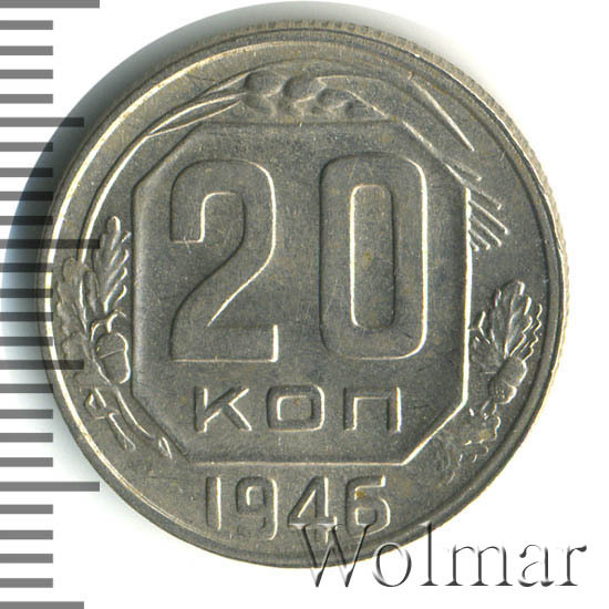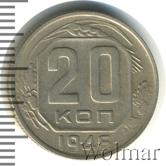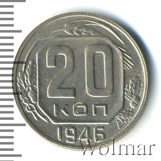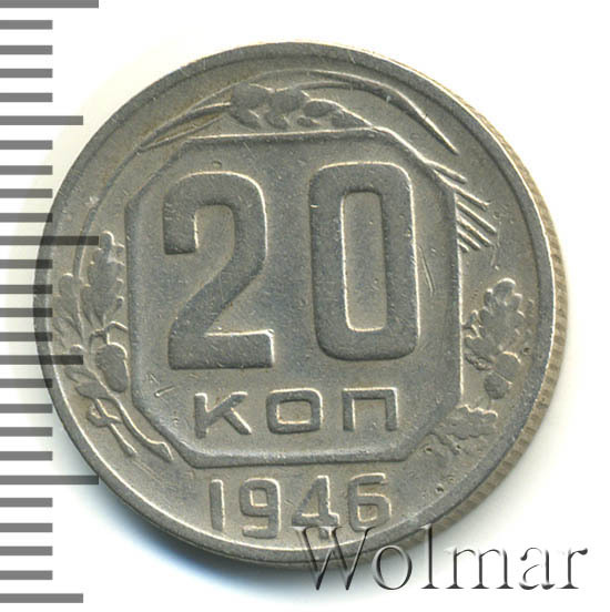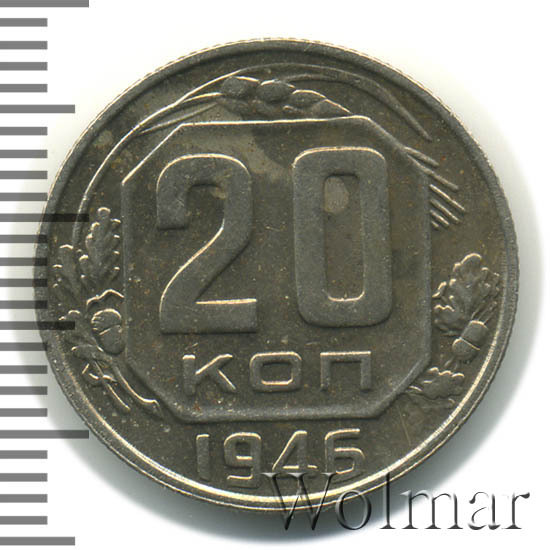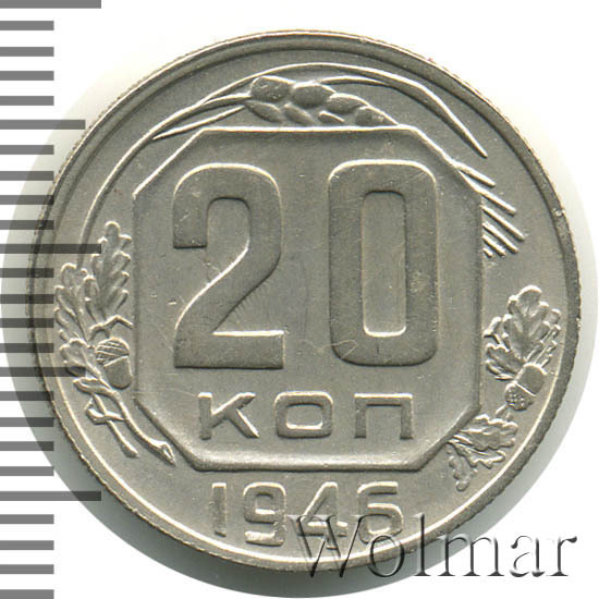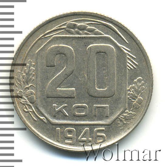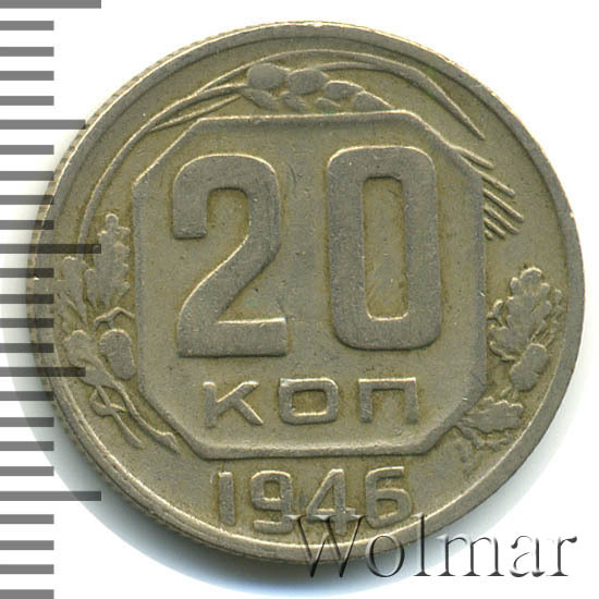 Цену на двадцать копеек 1946 г., в различном коллекционном состоянии, Вы можете увидеть на странице ниже, где приведены статистические данные, построенные на основе прошедших аукционов на самых популярных площадках.