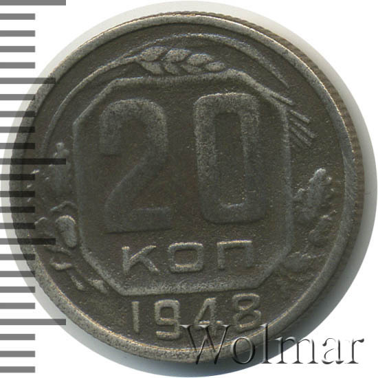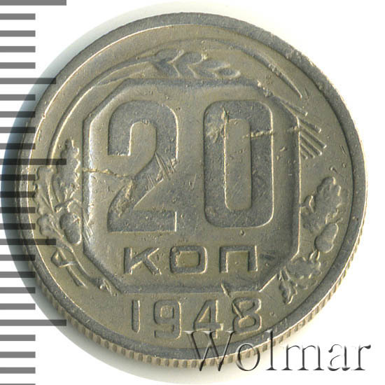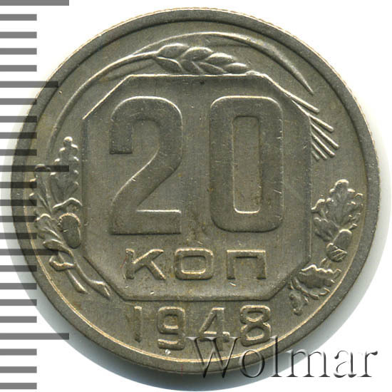 - 20 копеек 1948 года. Цена разновидностей. От рубля до десятков тысяч