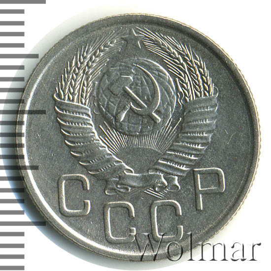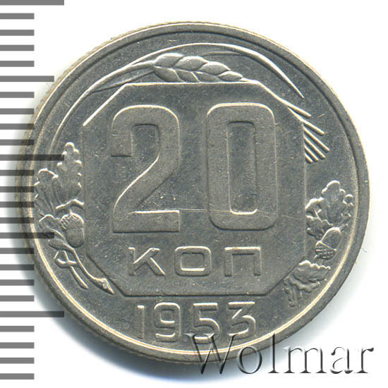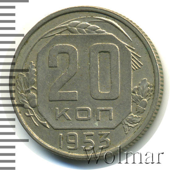 Реверс монеты 20 копеек 1953 года