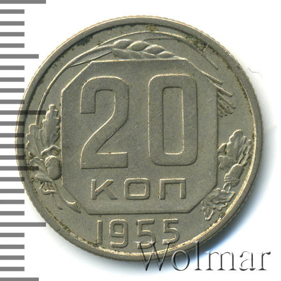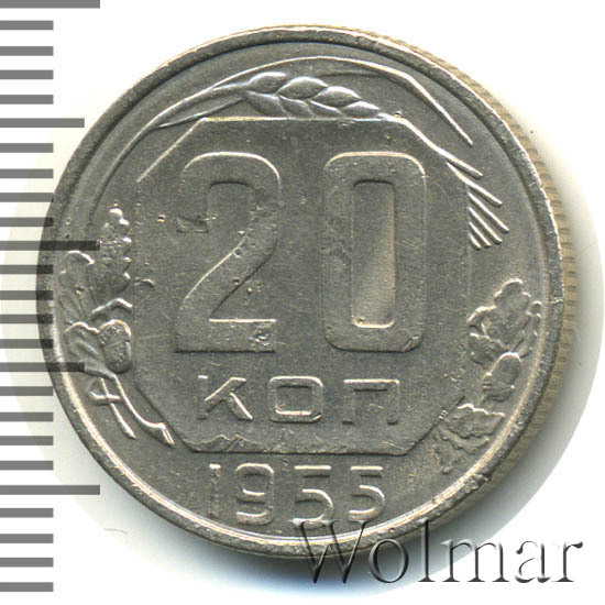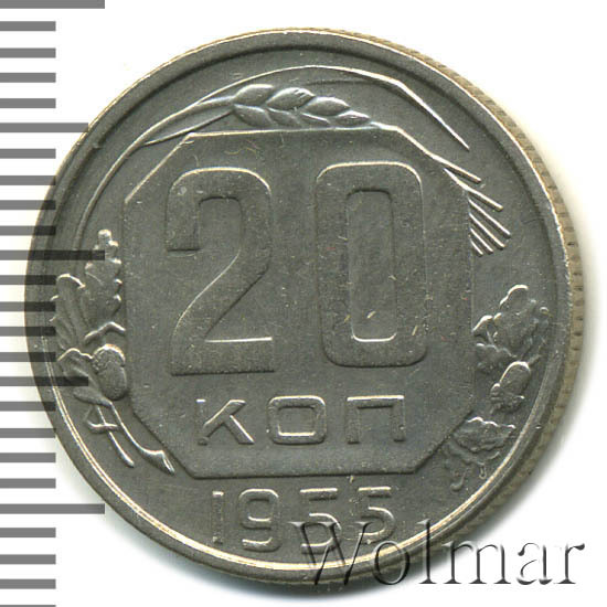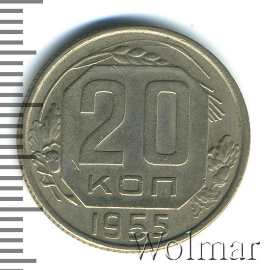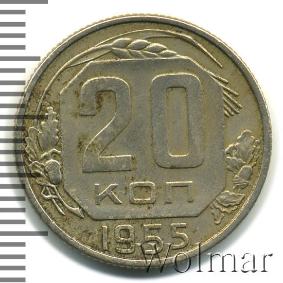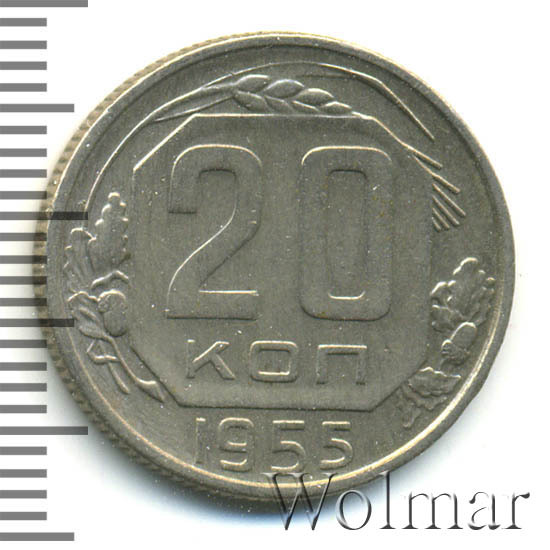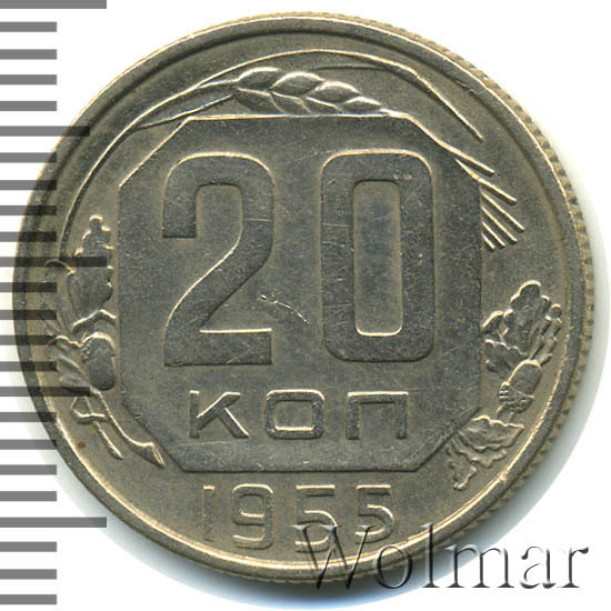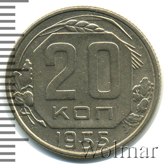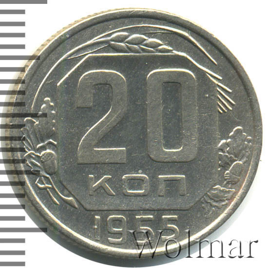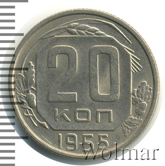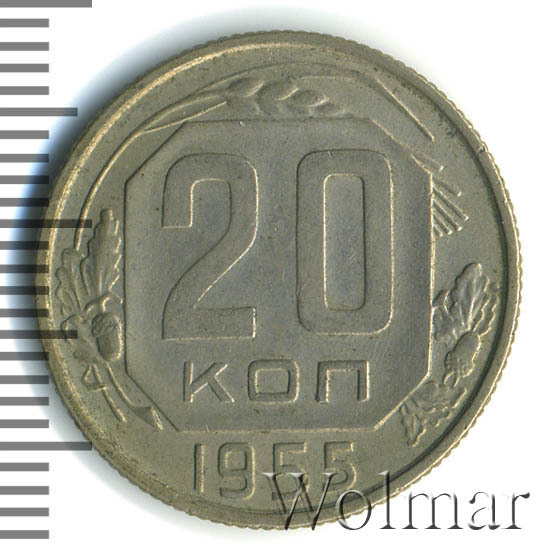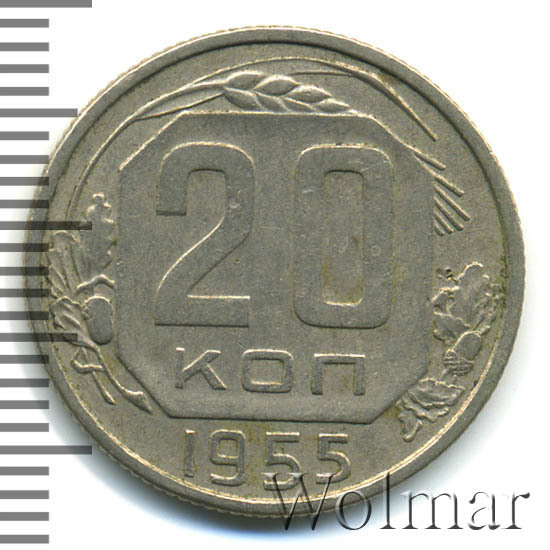 - Монета 20 копеек 1955 года. Цена рядового и раритетного экземпляра