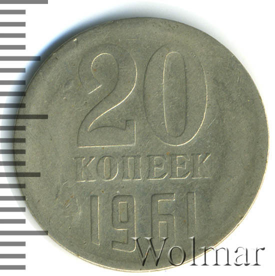 - Цена монеты СССР 20 копеек 1961 года и ее разновидностей