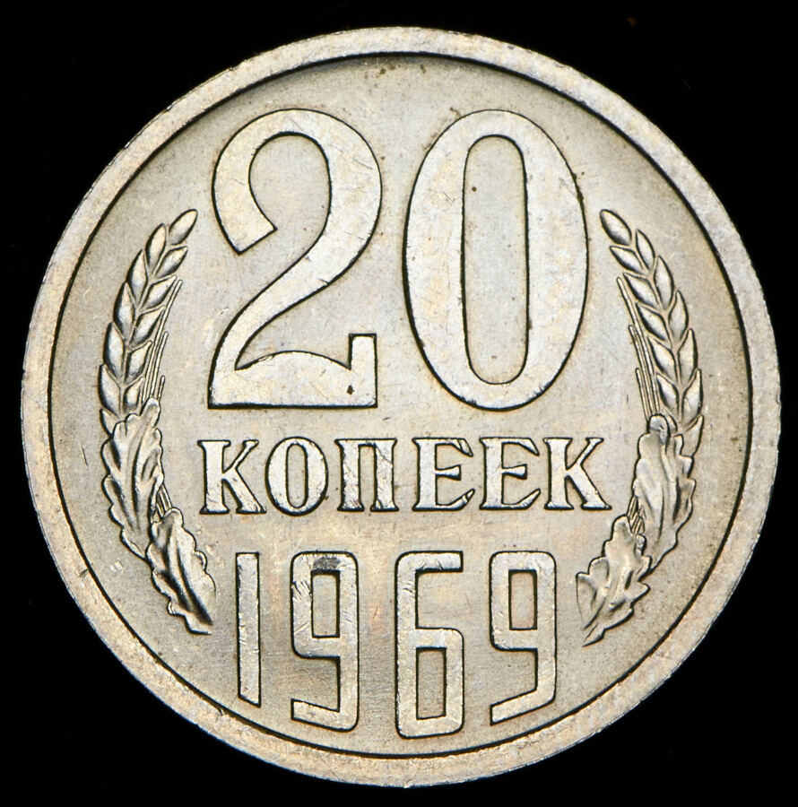 Реверс монеты 20 копеек 1969 года