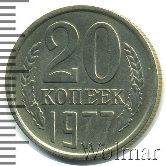 Другие буквы и разновидности монеты 20 копеек 1977 вогнутые ленты