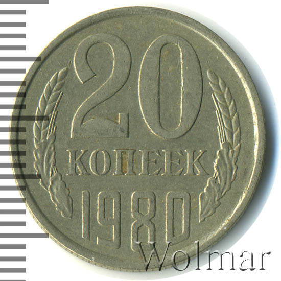Реверс монеты 20 копеек 1980 года штемпель 3.2