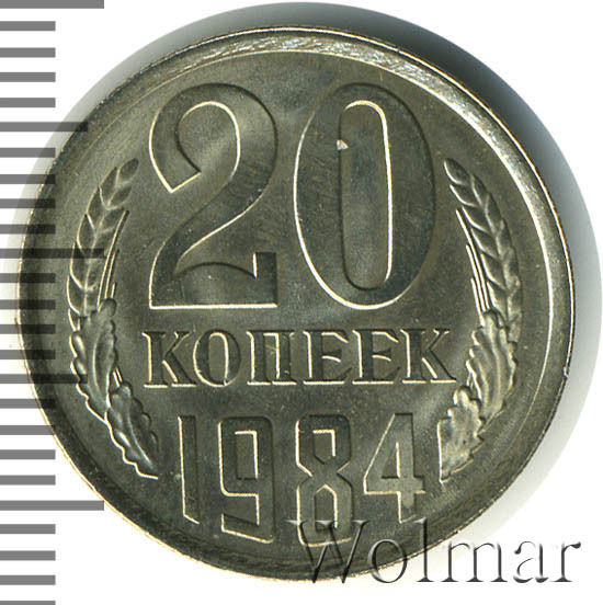 20 копеек 1984 совершенно обычная тиражная монета, встречается довольно частая, а её стоимость, можно сказать, чисто символическая, даже для идеальных экземпляров. Существует две более редкие разновидности, так называемые "перепутки", со штампом аверса от 3 копеек 1979 и 1981. Более детально разобраться в разновидностях и ознакомиться с со стоимостью 20 копеек 1984 вы сможете на страницах нашего каталога, составленного по результатам торгов самых популярных нумизматических интернет-аукционов.