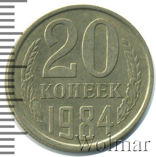 Реверс монеты 20 копеек 1984 года штемпель 3.2