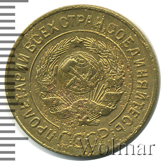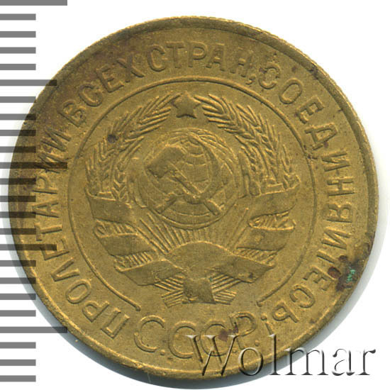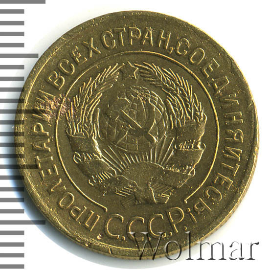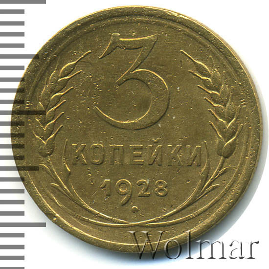 Разменная монета в три копейки, отчеканена на Ленинградском монетном дворе, как и ещё семь номиналов (от полкопейки до 20 коп.) выпущенных в денежный оборот Страны Советов в 1928 году.