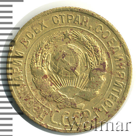 Довольно редкая разновидность (перепутка) 3 копеек 1928 года. Материал изготовления: алюминиевая бронза, немагнитная, желтого цвета. Отношение гербовой и оборотной сторон (аверса к реверсу) – медальное.