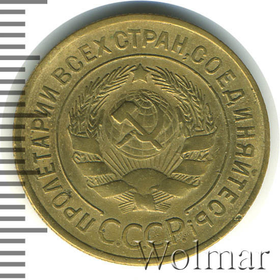 Монета в три копейки 1929 г. – тиражная, разменная монета, образца бронзовых монет 1926 – 1935 гг. Чеканка велась на Ленинградском монетном дворе (сейчас СПМД в городе Санкт – Петербург). В 1929 чеканилось семь номиналов (от 1 коп. до 20 коп.) разменной мелочи для денежного оборота Страны Советов. Тираж 3 коп.: 51150 тысяч штук. Материал изготовления: алюминиевая бронза, желтого цвета. Отношение гербовой и оборотной сторон (аверса к реверсу) – медальное. Особенности изображения деталей рисунка сторон монеты – см. описание аверса и реверса. Цена на 3 копейки 1929 г. определяется в зависимости от коллекционного состояния.