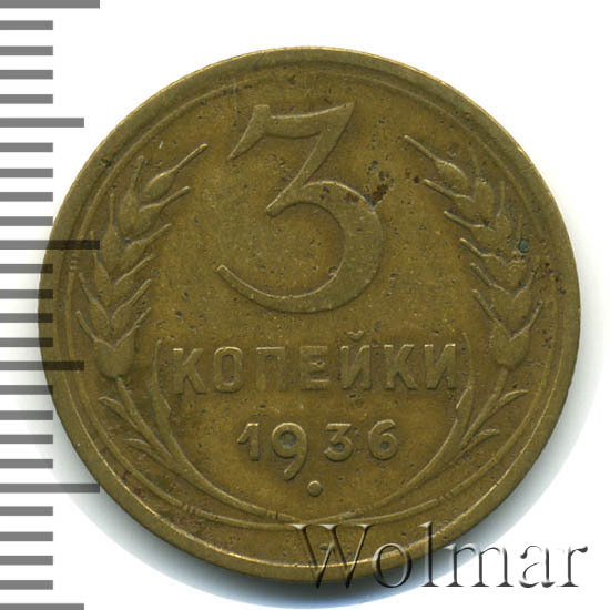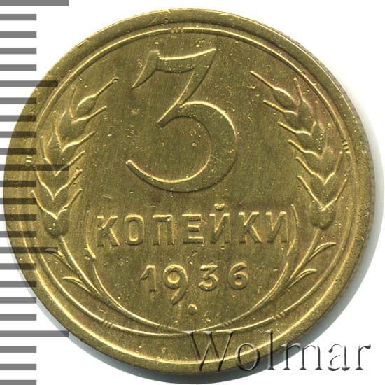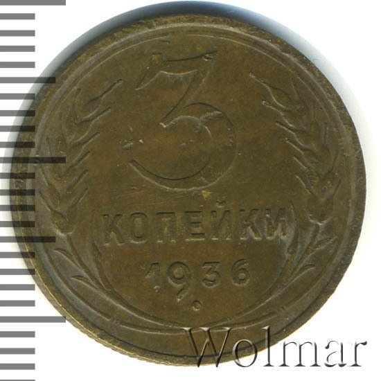 Цена на монету 3 копейки 1936 года на сегодня, 12 апреля 2026 года