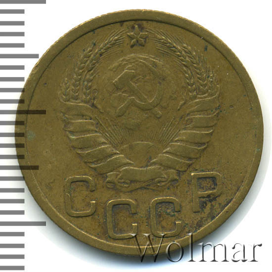 Аверс монеты 3 копейки 1939 года