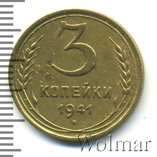 Цена на монету 3 копейки 1941 года на сегодня, 11 марта 2026 года