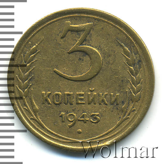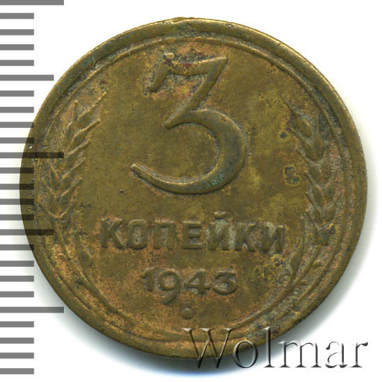 Цена на монету 3 копейки 1943 года на сегодня, 4 апреля 2026 года
