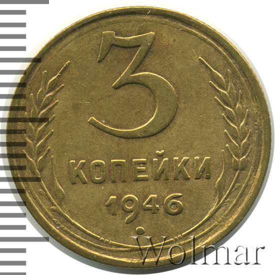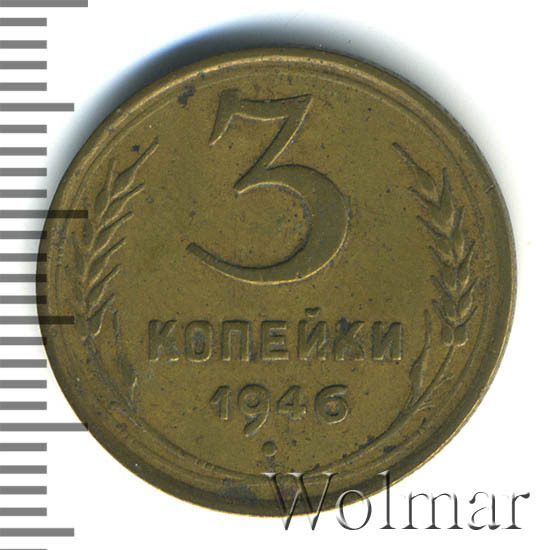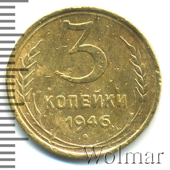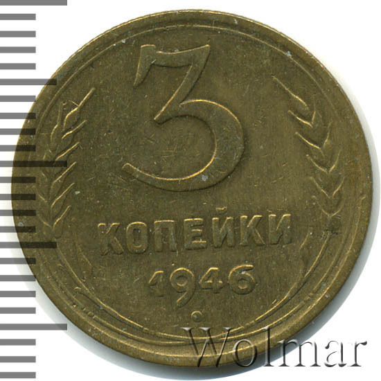 Реверс монеты 3 копейки 1946 года