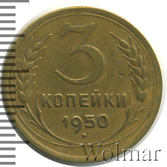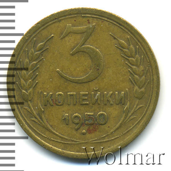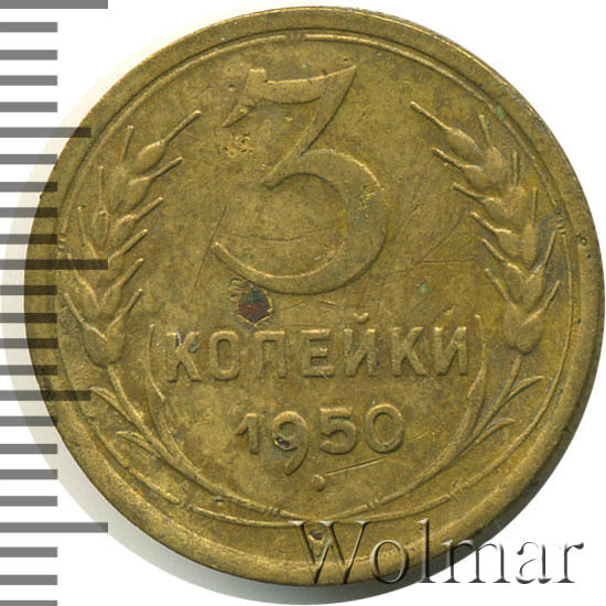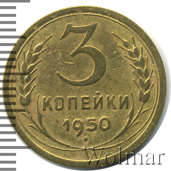 Цена на монету 3 копейки 1950 года на сегодня, 19 марта 2026 года