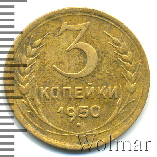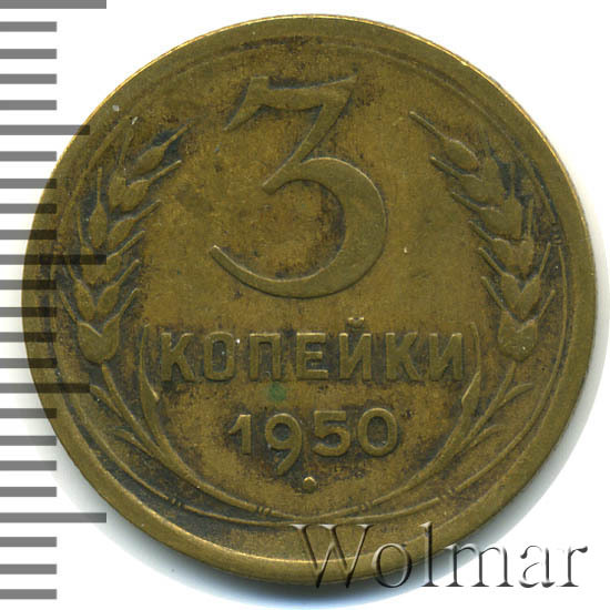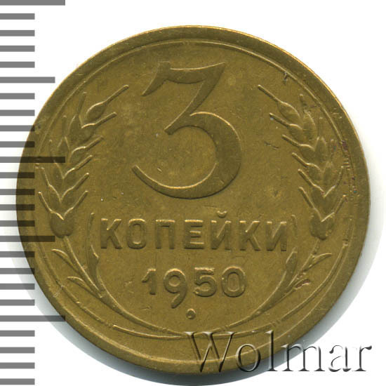 Реверс монеты 3 копейки 1950 года