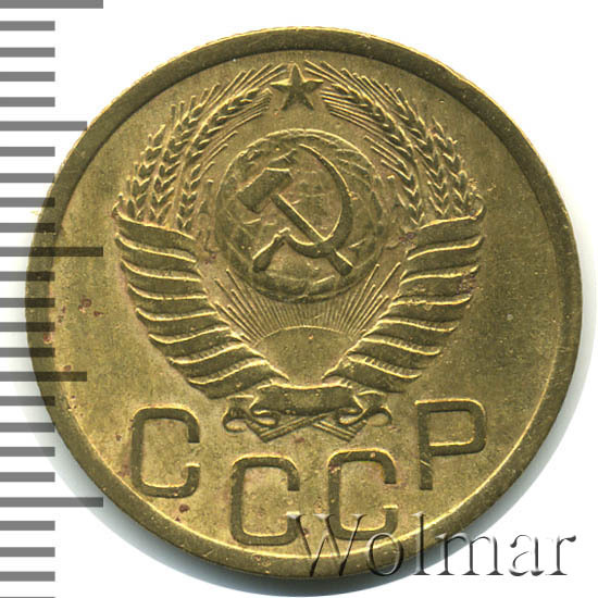 Стоимость 3-х копеек 1950 г. не значительна на монеты средней сохранности, в высокой (без следов обращения), повышается в несколько раз. Цена 3 копеек 1950 года зависит не только от сохранности, но и от штемпельных разновидностей, которые разнятся деталями оформления лицевой и оборотной сторон монеты. У этой монетки их 3. Особо выделяется одна из них – 3.21"А" (Ф№103). Степень редкости этого разновида – R4 (оценка по каталогу Федорина (2013) – 3500 у.е.). Известен специальный чекан этой монеты, который был произведен во второй половине 50-х годов прошлого столетия (шт.7, Ф№ 106, оценка – 1000 у.е.). В обороте не встречается. Подробно ознакомиться с ценой 3 копеек 1950 г., Вы можете во вкладке «стоимость монет», а так же принять участие в текущих аукционах, заглянув во вкладку «активные лоты».