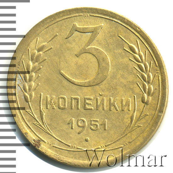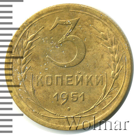 Реверс монеты 3 копейки 1951 года