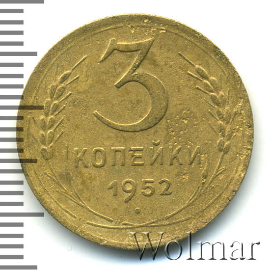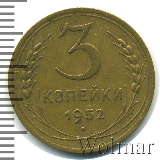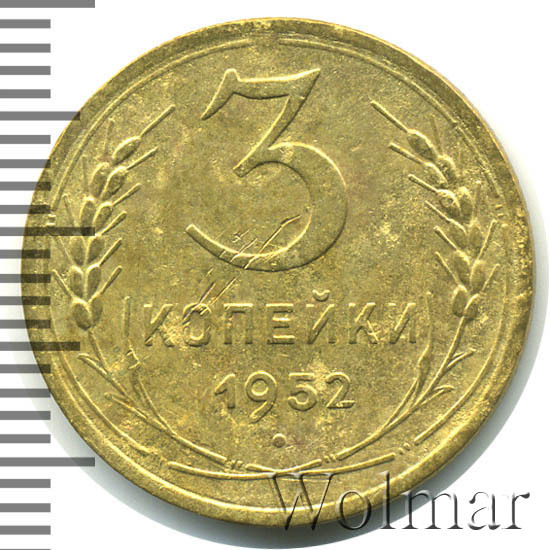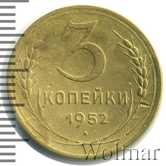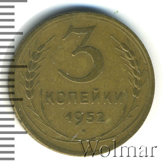 Реверс монеты 3 копейки 1952 года