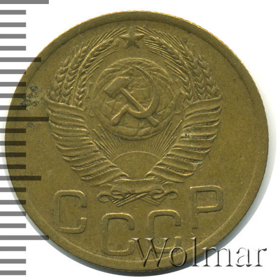 Аверс монеты 3 копейки 1952 года