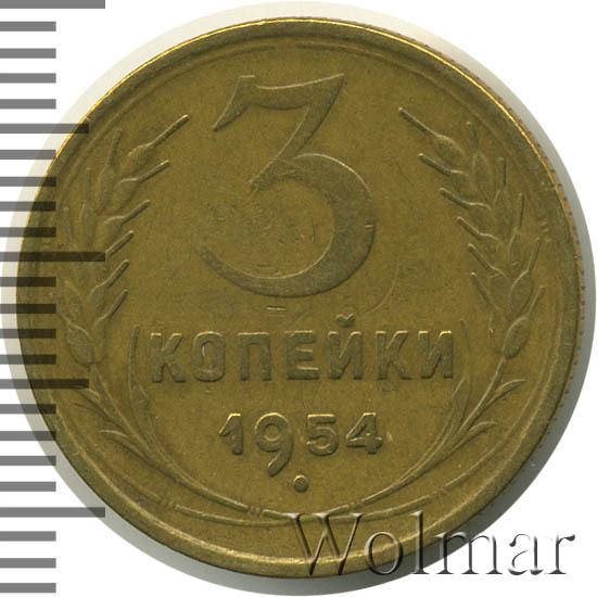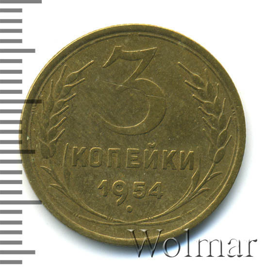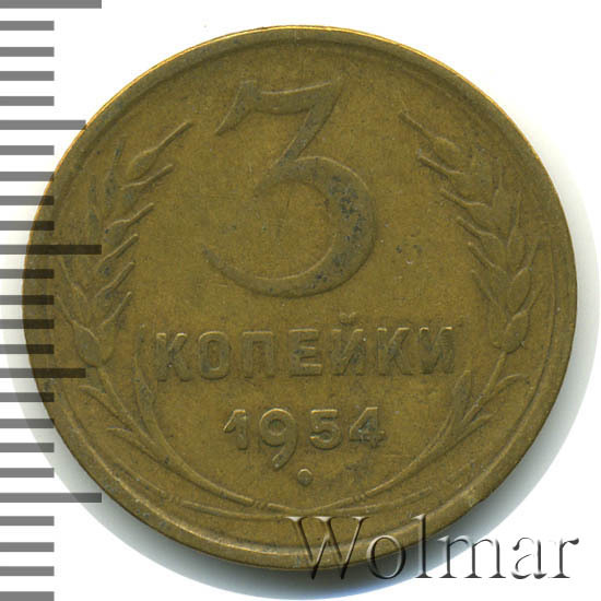 Реверс монеты 3 копейки 1954 года