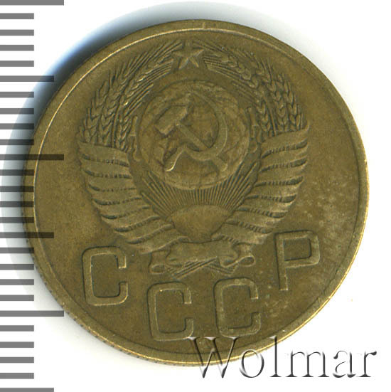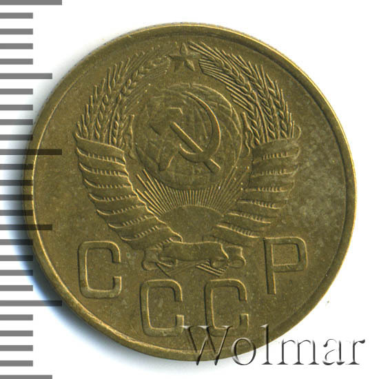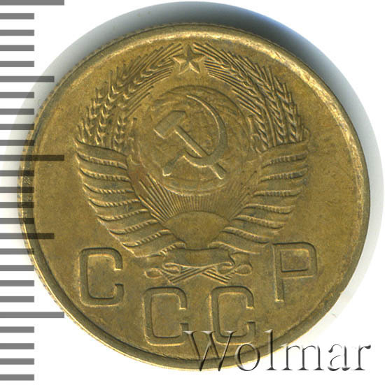 Очень часто встречается в погодовки до реформенных монет денежного обращения Советского Союза. Тиражная, разменная монета, одна из 7 номиналов регулярного чекана, выпущенных в этом году. Чеканилась из сплава алюминия и бронзы, ЛМД (Ленинградский монетный двор), образца 1948 – 1957 годов. Данных о количестве экземпляров, выпущенных с мон. двора, нет. Известны три (см. описание гербовой и оборотной стороны) разновидности 3 копеек 1954 года. Цена зависит от сохранности конкретного экземпляра, но в итоге, все равно не будет высокой, из-за большого количества монет данного номинала и года, дошедших до наших дней. Узнать цену 3 копеек 1954 в различной сохранности, можно на странице ниже, по нашему каталогу проходов и цен, отмеченных на торгах самых популярных нумизматических аукционов.