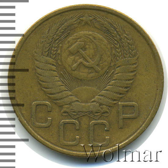 Аверс монеты 3 копейки 1954 года