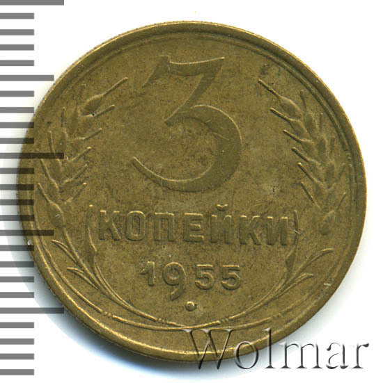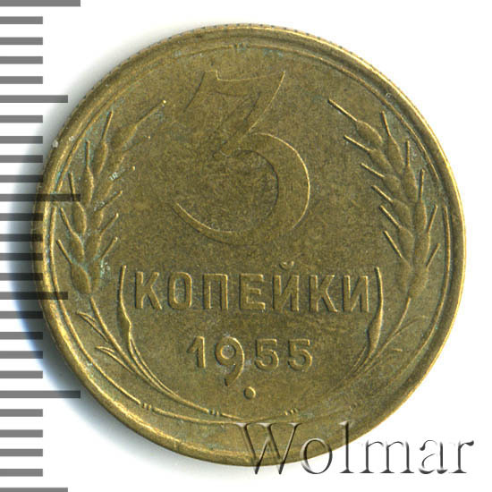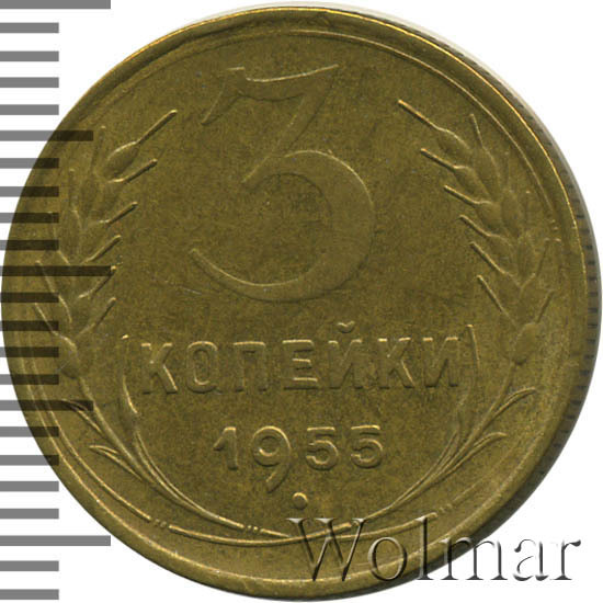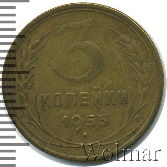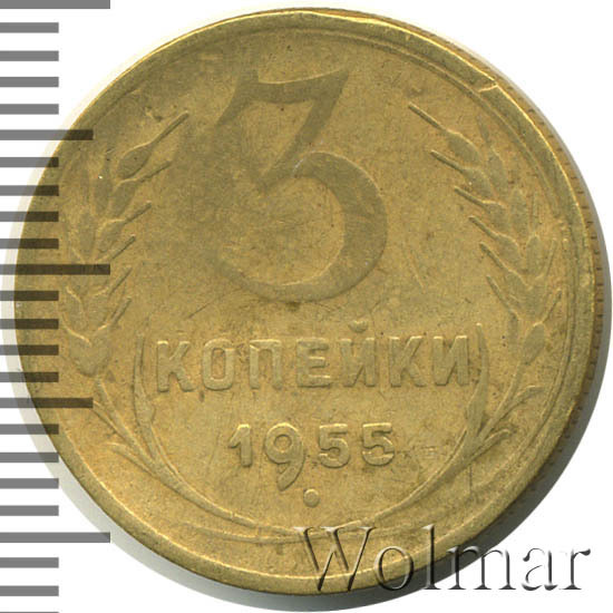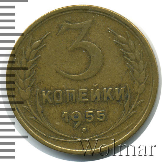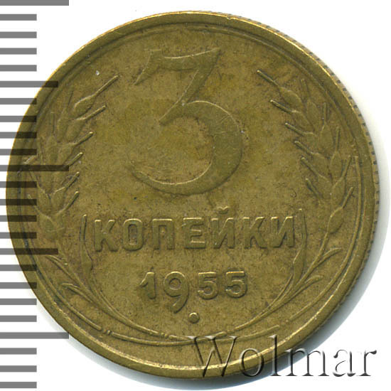 Цена на монету 3 копейки 1955 года на сегодня, 26 февраля 2026 года