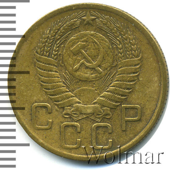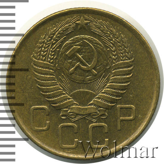 Тип разменных монет 1948 – 1957 гг. Представляет небольшую, в связи с массовой встречаемостью, нумизматическую ценность только в коллекционной сохранности UNC. Поиск разновидностей результатов не дал.