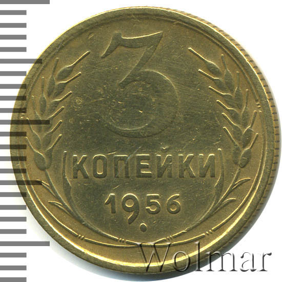 Реверс монеты 3 копейки 1956 года