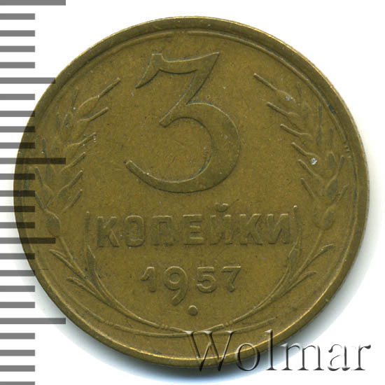 Реверс монеты 3 копейки 1957 года
