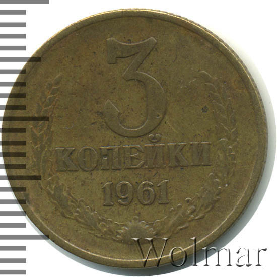Реверс монеты 3 копейки 1961 года штемпель 2.1Б