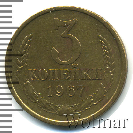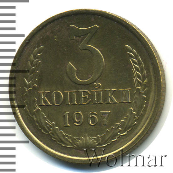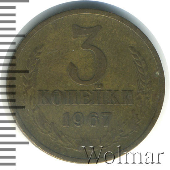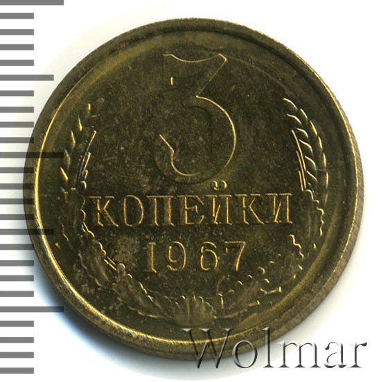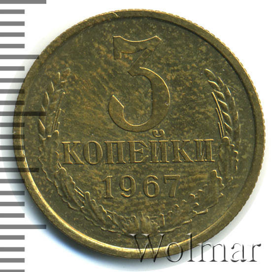Стоимость 3 копеек 1967 повышается в зависимости от состояния. Тип 1961-1991 годов.