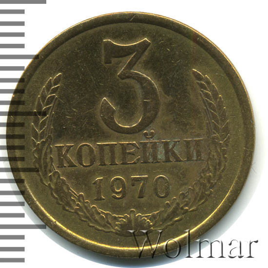Цена на монету 3 копейки 1970 года на сегодня, 9 апреля 2026 года